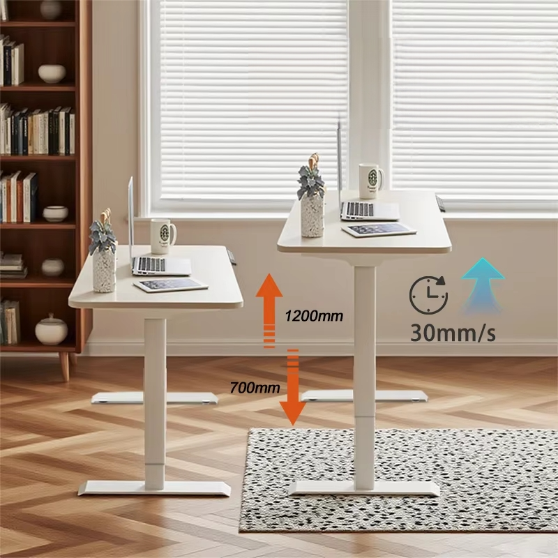 Heavy-Duty T-Style Frame: Constructed with reinforced carbon steel legs in a powder-coated arctic white finish, offering wobble-free stability even at its maximum height.
