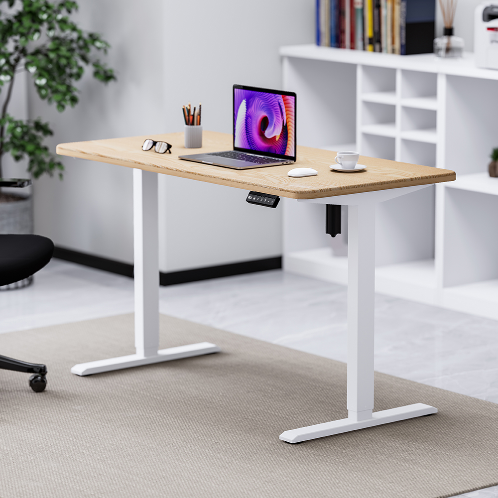 Elevate your productivity and your health with the Electric Standing Desk. Designed for the modern professional who refuses to stay static, this workstation allows you to transition from sitting to standing at the push of a button. Combining a warm, natural oak-grain surface with a clean, industrial-white motorized frame, it brings a minimalist Scandi-aesthetic to your home office or corporate studio.