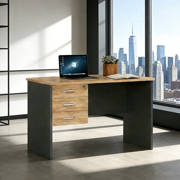Maximize your productivity without sacrificing style. The Office Desk is the perfect blend of minimalist design and practical utility. Designed for home offices, student dorms, or streamlined corporate workspaces, this desk offers a warm natural aesthetic paired with an industrial charcoal frame that fits seamlessly into any modern interior.