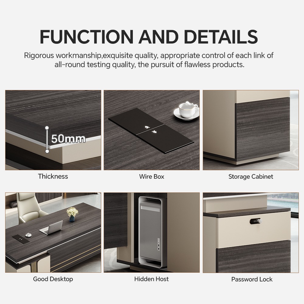 Spacious Leadership Surface: Designed with a massive 2.0m+ width (approx.), providing ample space for dual monitors, a laptop, and a dedicated zone for signing high-stakes contracts.