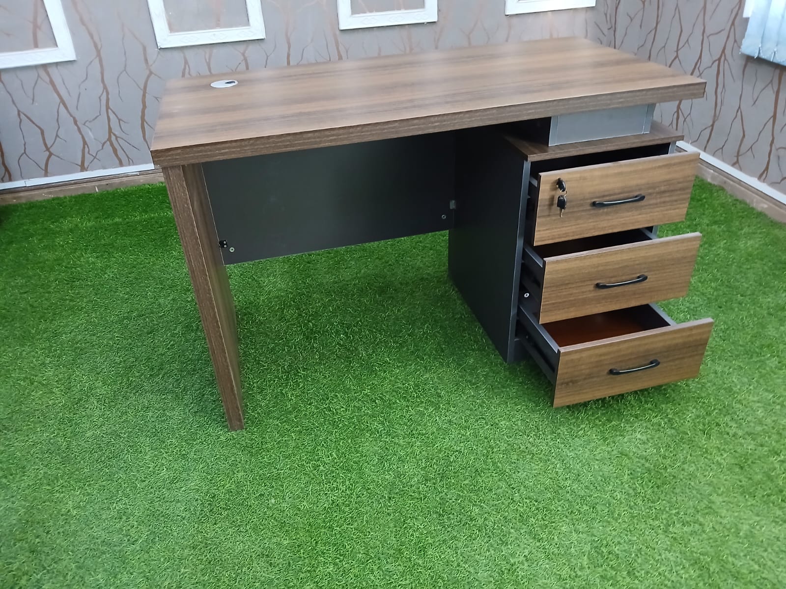 Integrated 3-Drawer Pedestal: Comes with three smooth-gliding drawers for all your filing and stationery needs. The top drawer features a secure locking mechanism to keep your sensitive documents and personal items safe.