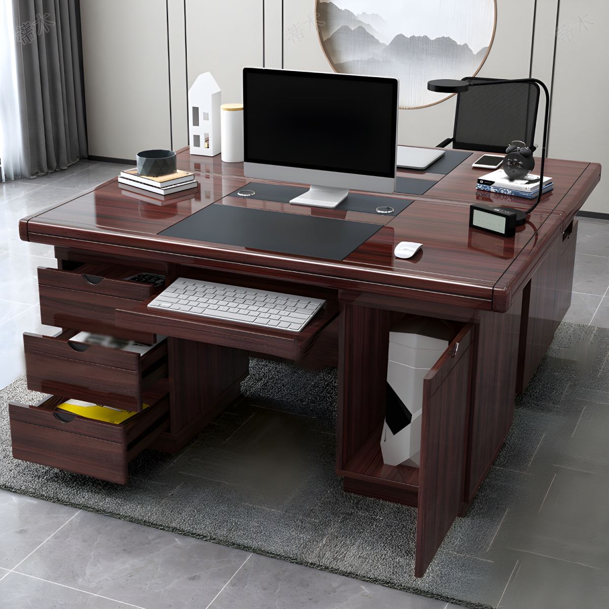 Bring a sense of prestige and timeless organization to your workspace with our Classic Executive Mahogany Study Desk. Designed for those who appreciate the weight and warmth of traditional furniture combined with modern functionality, this desk is a masterpiece of office design. Whether you are outfitting a high-end corporate office or a sophisticated home study, this desk provides the perfect foundation for leadership and focus.
