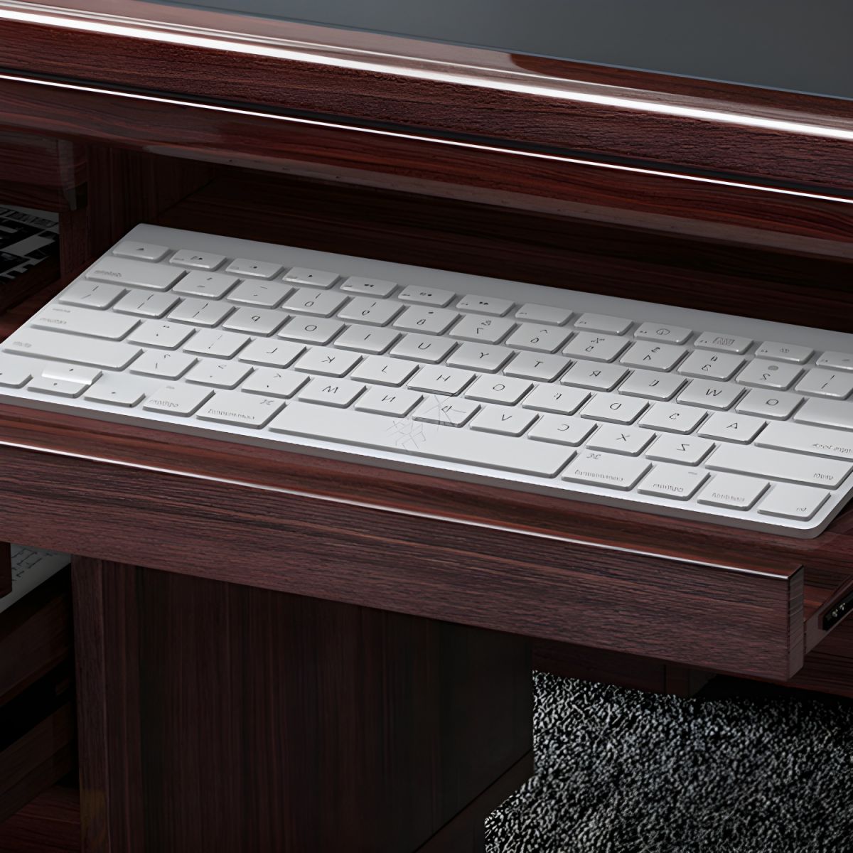 Sliding Keyboard Tray: A smooth-action pull-out tray allows for ergonomic typing while maximizing the available space on the main tabletop.