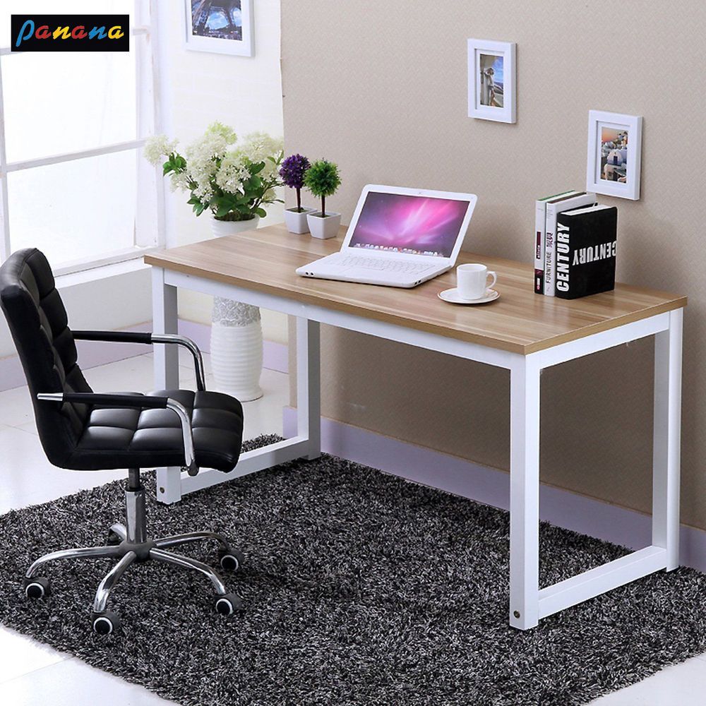 - Stylish Wooden Desk: Natural wood finish with white metal legs for a clean, modern look