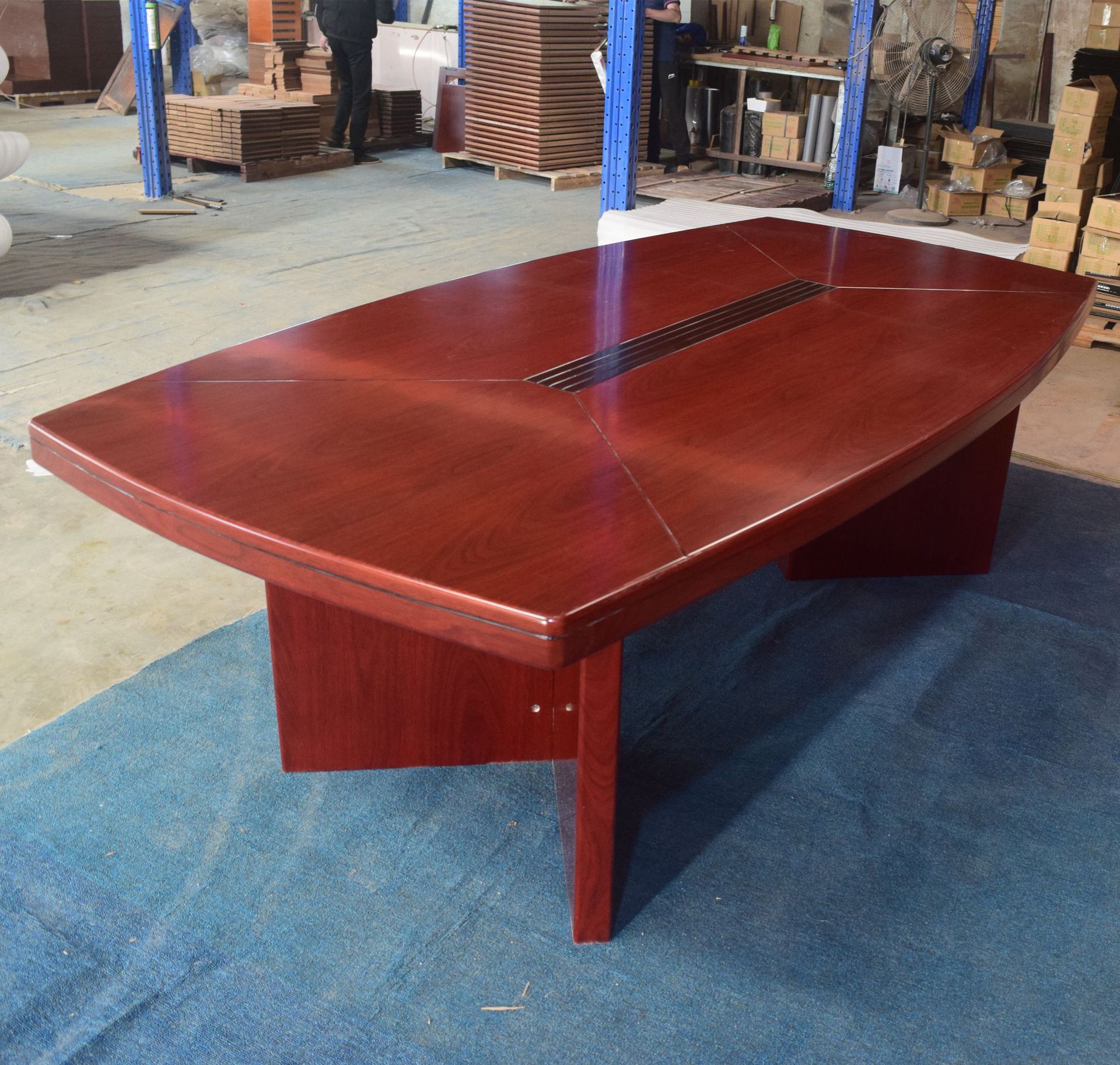 -This table is made from solid wood & hardwood veneers, and is in a rich mahogany finish. Wood surfaces are protected with a high-tech catalyzed lacquer for scratch resistant surfaces. this boardroom table is durable and has luxurious look.