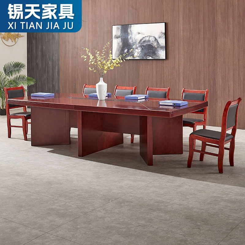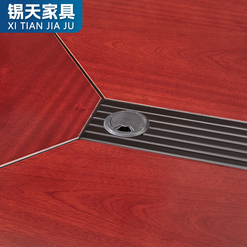 Empower your team meetings with a table designed for the digital age. The Connect-Pro Series offers a vast, durable workspace equipped with built-in wire management for seamless laptop and projector connectivity. The warm cherry-wood tones and architectural pedestal base provide both stability and a welcoming professional atmosphere. Ideal for boardrooms, training centers, and collaborative executive spaces.