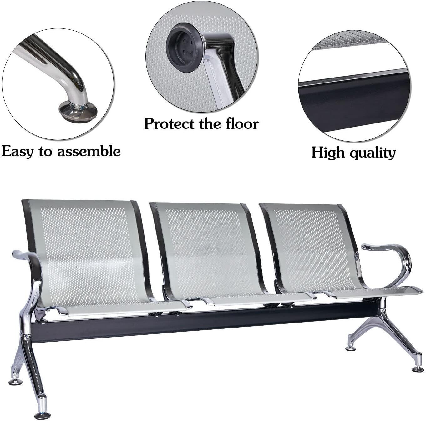 3-Link Heavy-duty Padded Waiting Bench