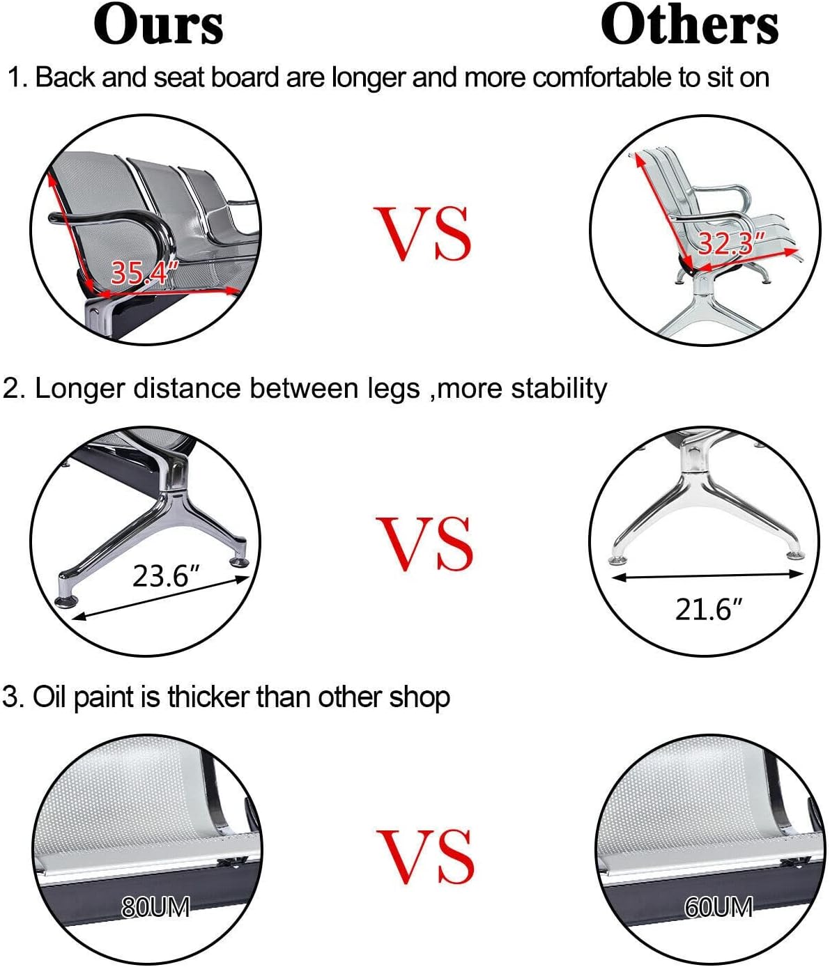 Ergonomic Contoured Design: The seats are precision-curved to provide optimal back support, keeping visitors comfortable even during longer wait times.