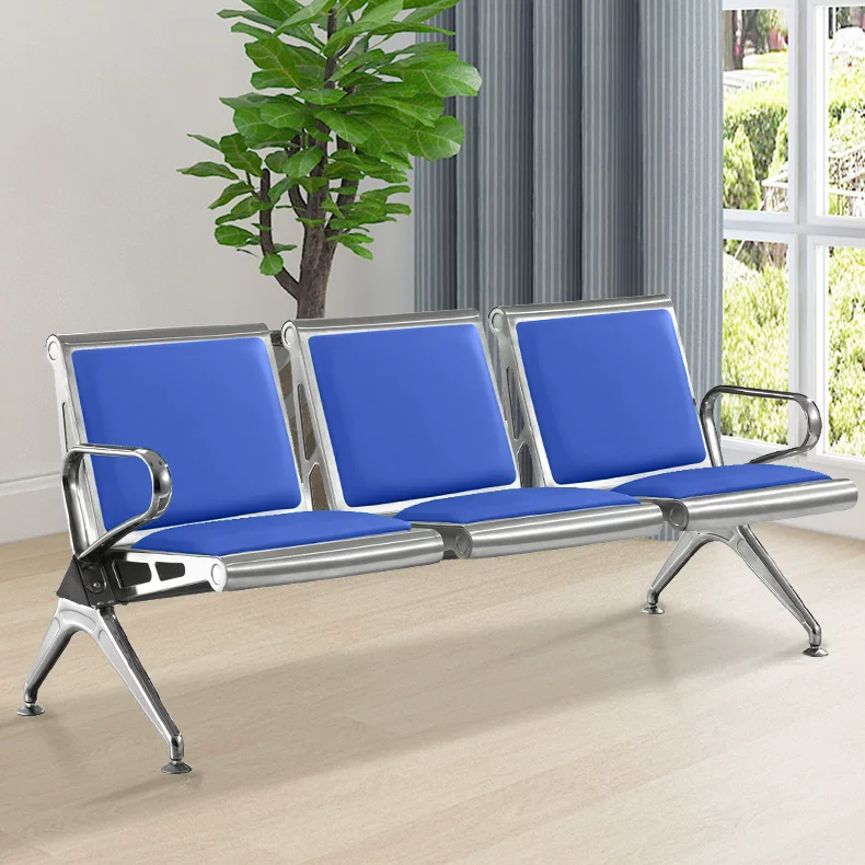 Contoured Padded Support: Each seat and backrest is fitted with high-resilience, royal blue padded inserts that offer essential lumbar support for long waiting periods.