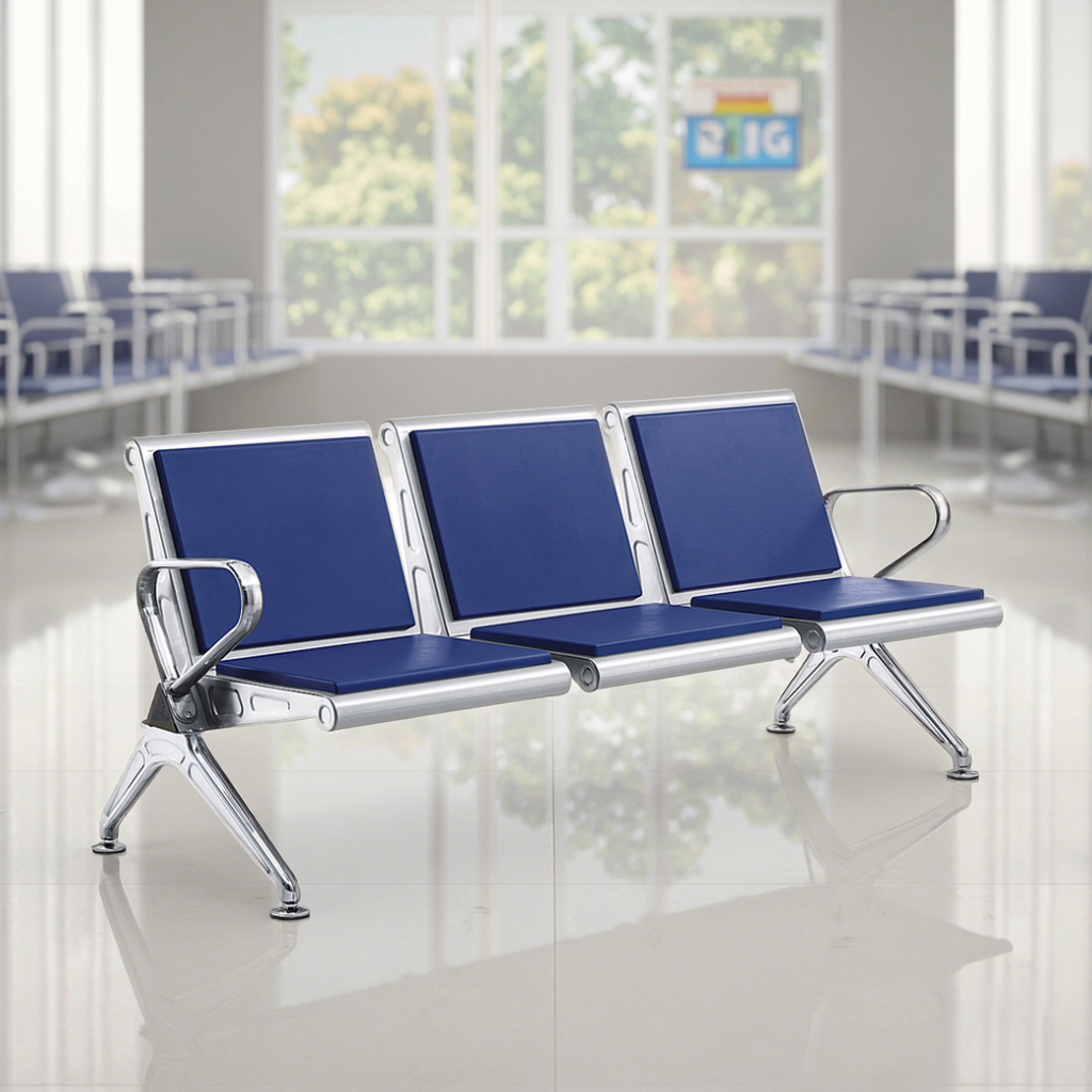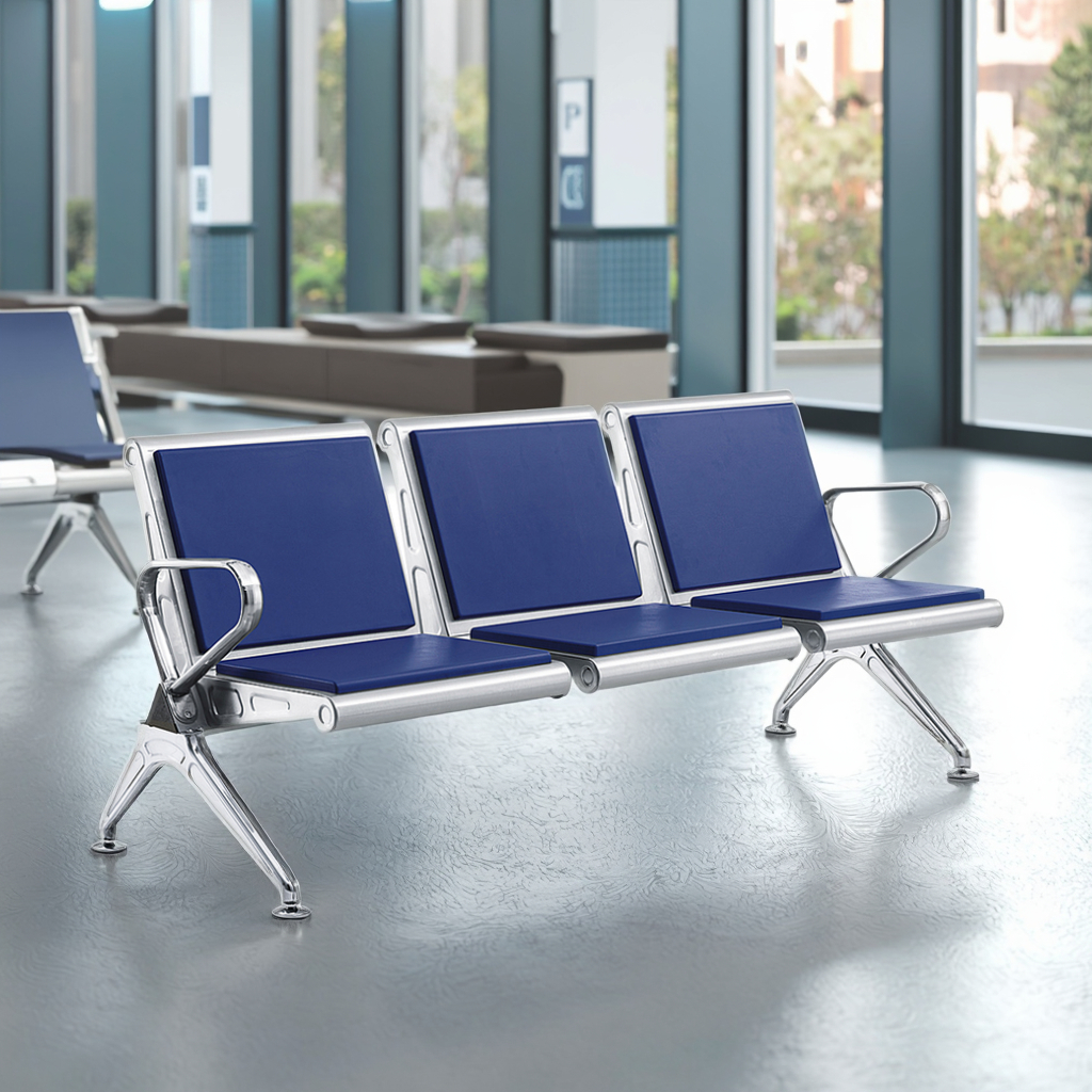 Upgrade your reception area with seating designed for long-lasting support and professional appeal. Our heavy-duty 3-seater airport-style bench is the ideal solution for high-traffic environments, combining a sleek stainless steel frame with high-density padded cushions for a superior visitor experience. First impressions start in the waiting room. Provide your guests with a clean, modern, and comfortable place to sit while they wait for your services.