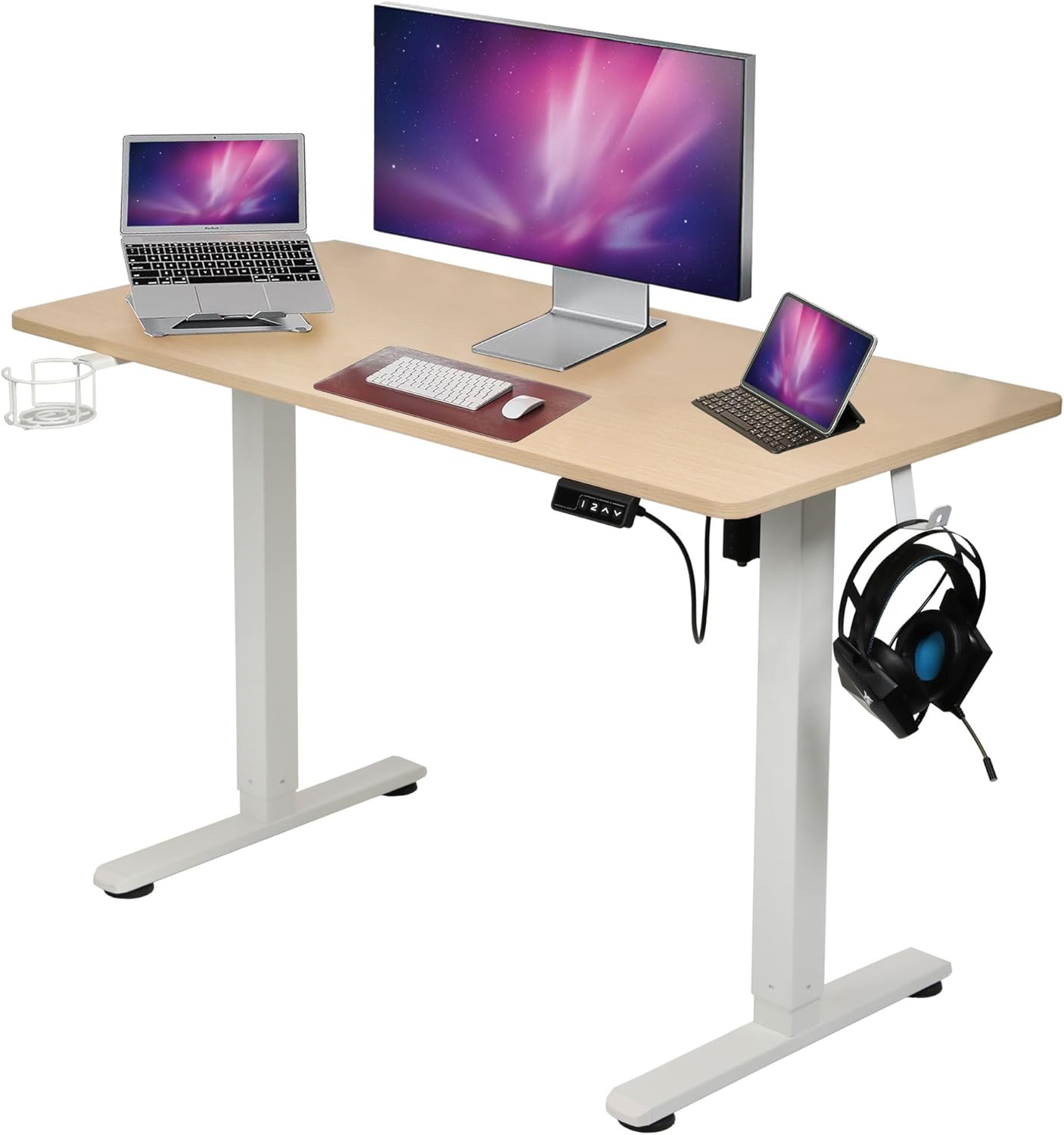 Built-in Workspace Accessories: Comes standard with a side-mounted headphone hook and a dedicated cup holder to keep your desktop clutter-free and safe from spills.