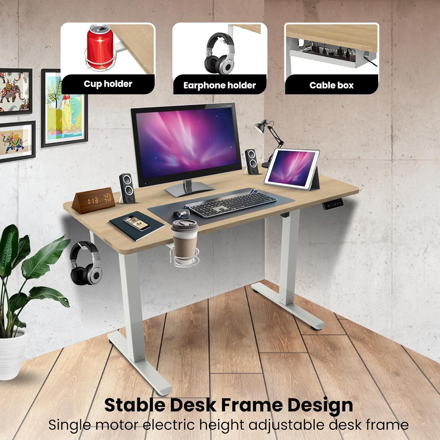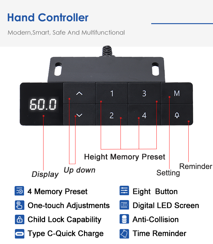 One-Touch Electric Adjustment: Features a smart digital control panel with programmable height presets, allowing you to find your perfect level with a single tap.