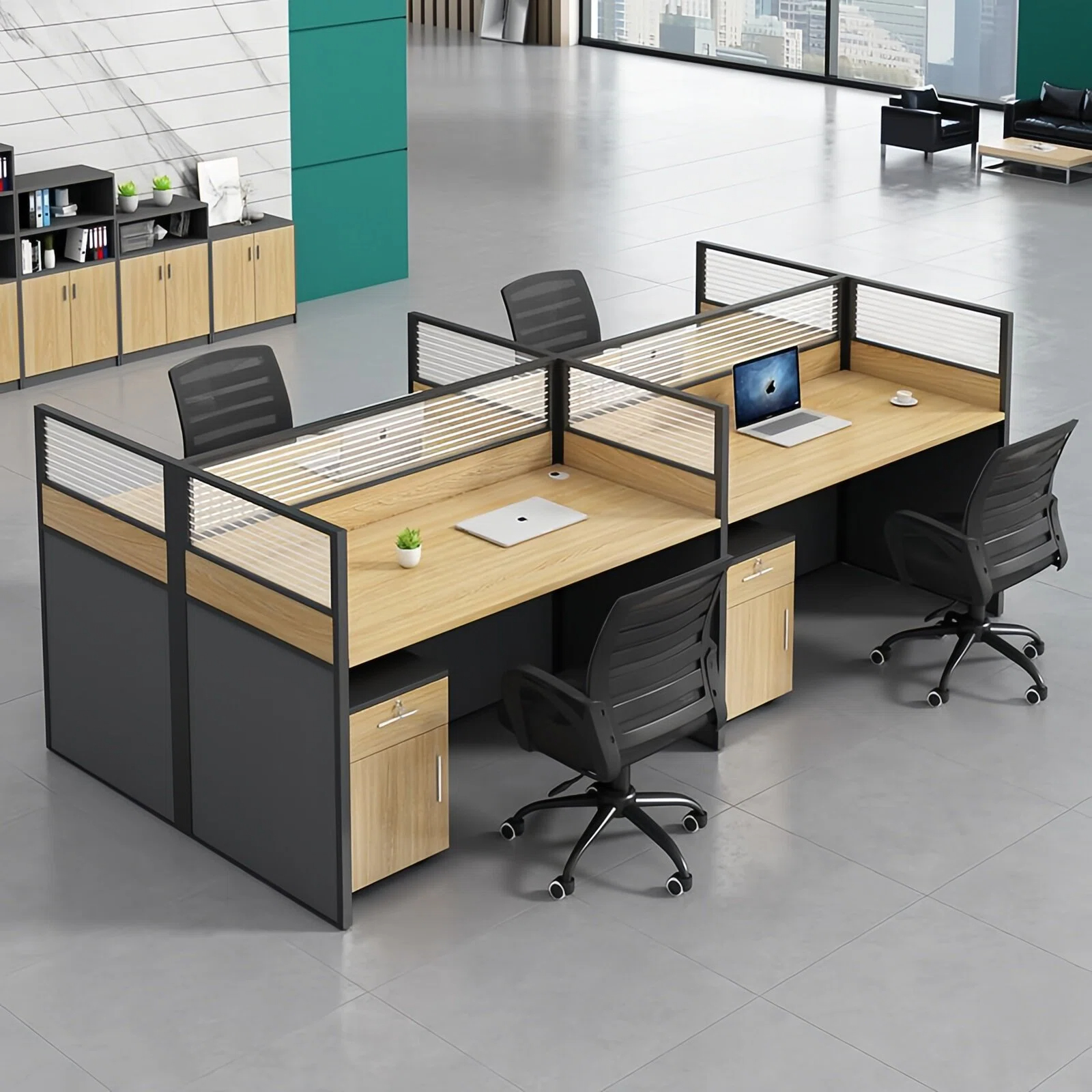 Maximize your office space with this 4-Way Workstation, designed for productivity, collaboration, and efficient use of workspace. Perfect for small offices, shared work areas, or home offices, this workstation combines functionality and modern design.