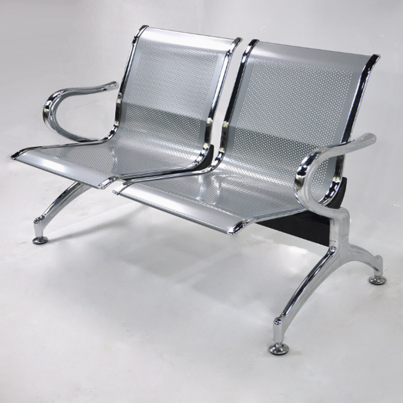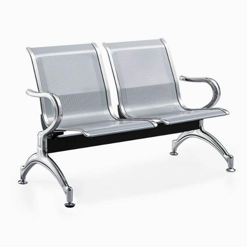 Integrated Armrest Dividers: Features sleek, polished chrome armrests that define personal space for each user while providing a sturdy grip for sitting and standing.