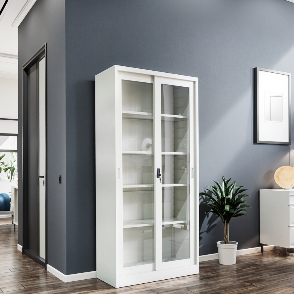 Full Glass Metal Filing Cabinet – Modern & Secure Office Storage