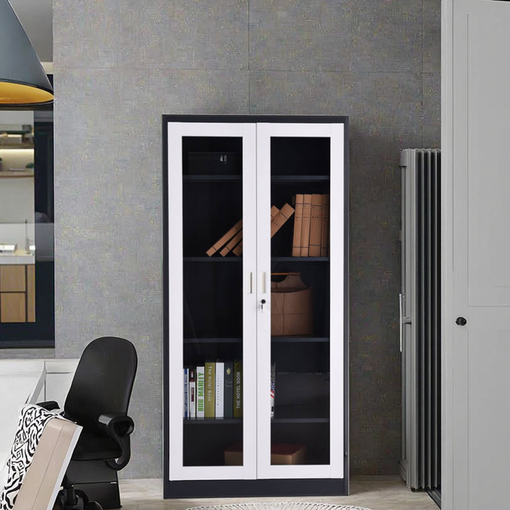 Upgrade your office organization with the Metallic Cabinet, a sophisticated storage solution that balances security with high-end style. Featuring a striking contrast between its deep onyx outer frame and crisp white glass-door borders, this cabinet is designed to showcase your professional library, awards, or curated décor while keeping them protected from dust. It is the perfect anchor piece for an executive office that values transparency and modern architectural lines.