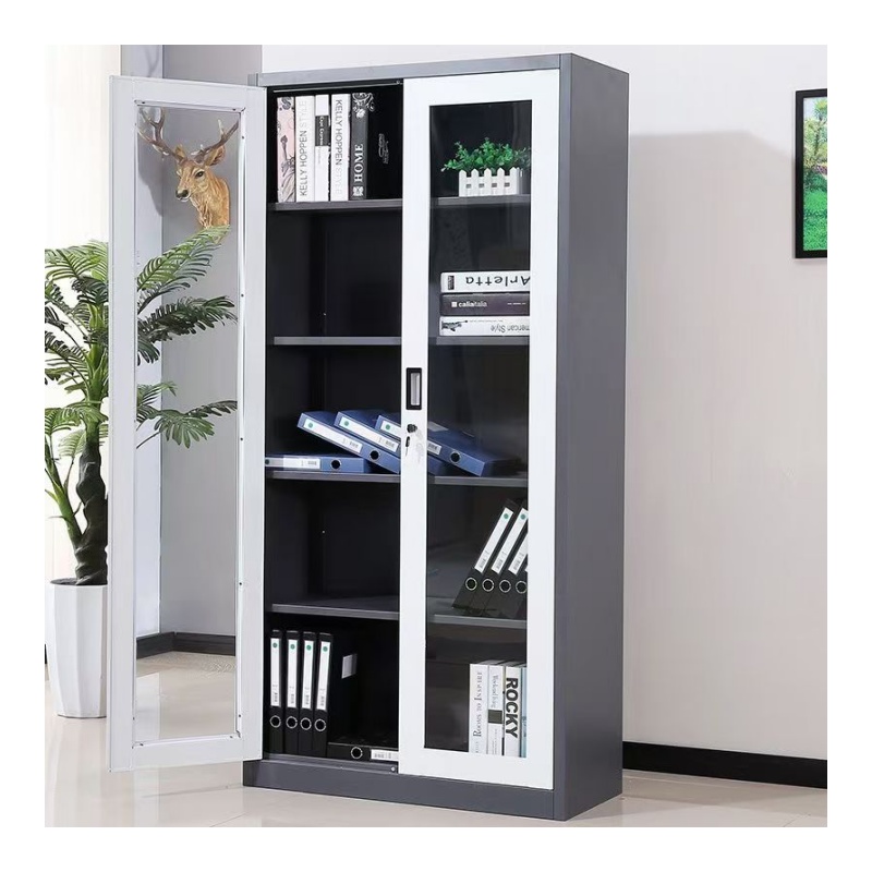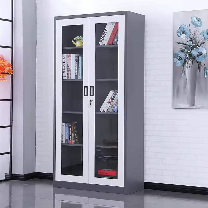 Tempered Glass Viewing Panels: Dual full-length glass doors allow for immediate visual inventory of your documents and decorative items while maintaining a sleek, dust-free environment.