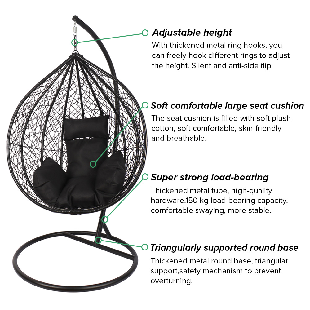 Stable Circular Base: The wide, circular steel base provides excellent balance and prevents tipping, giving you peace of mind as you lounge.