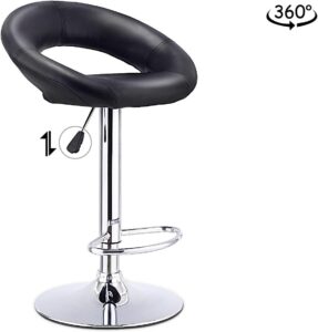 The ergonomic curved seat provides excellent comfort, while the height-adjustable feature allows you to customize it to your preferred sitting level. Built with a sturdy chrome base and footrest, this bar stool offers stability, durability, and long-lasting performance. Its 360-degree swivel function makes movement easy and convenient, enhancing your seating experience.