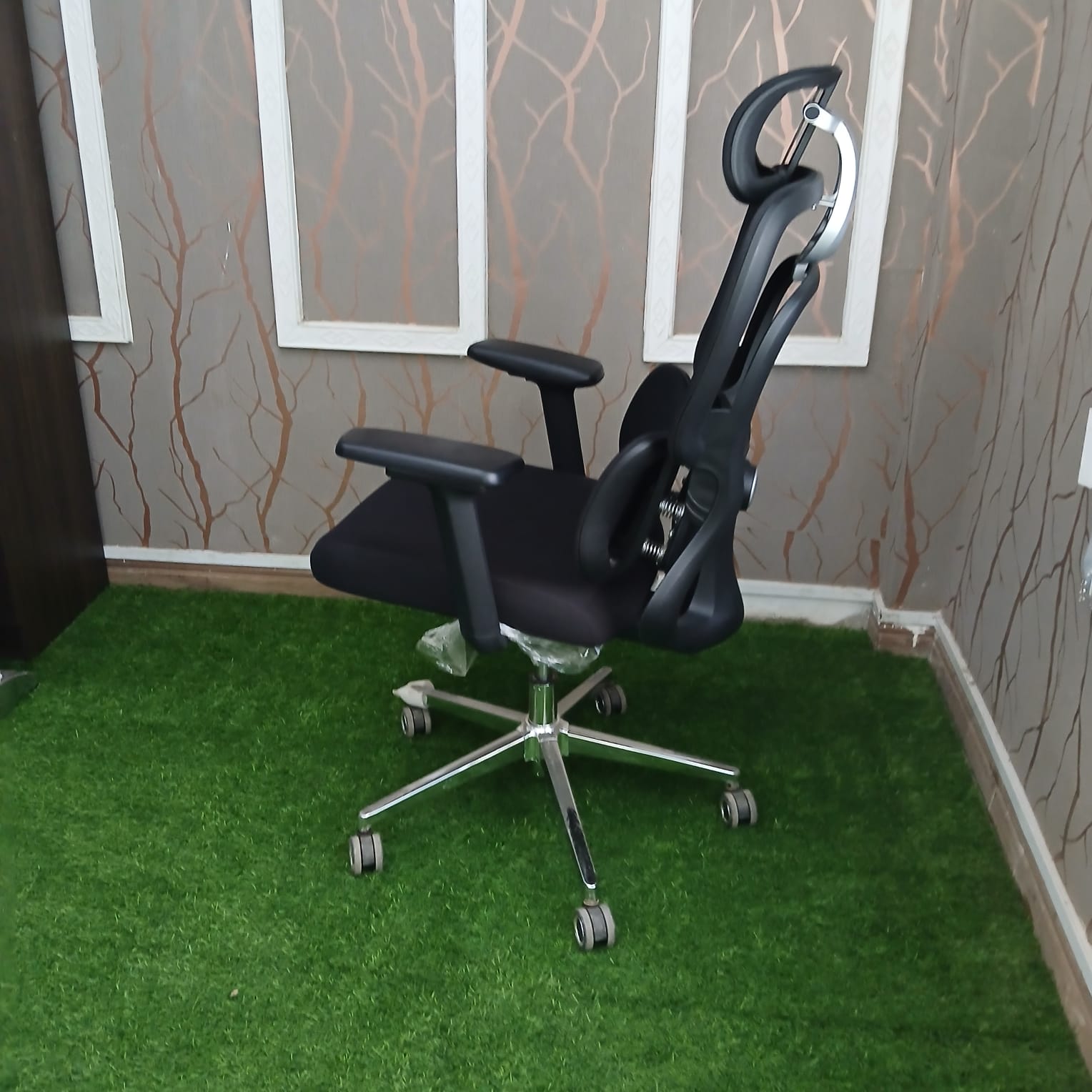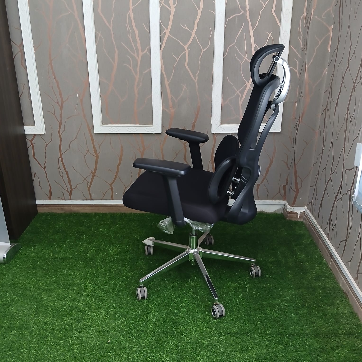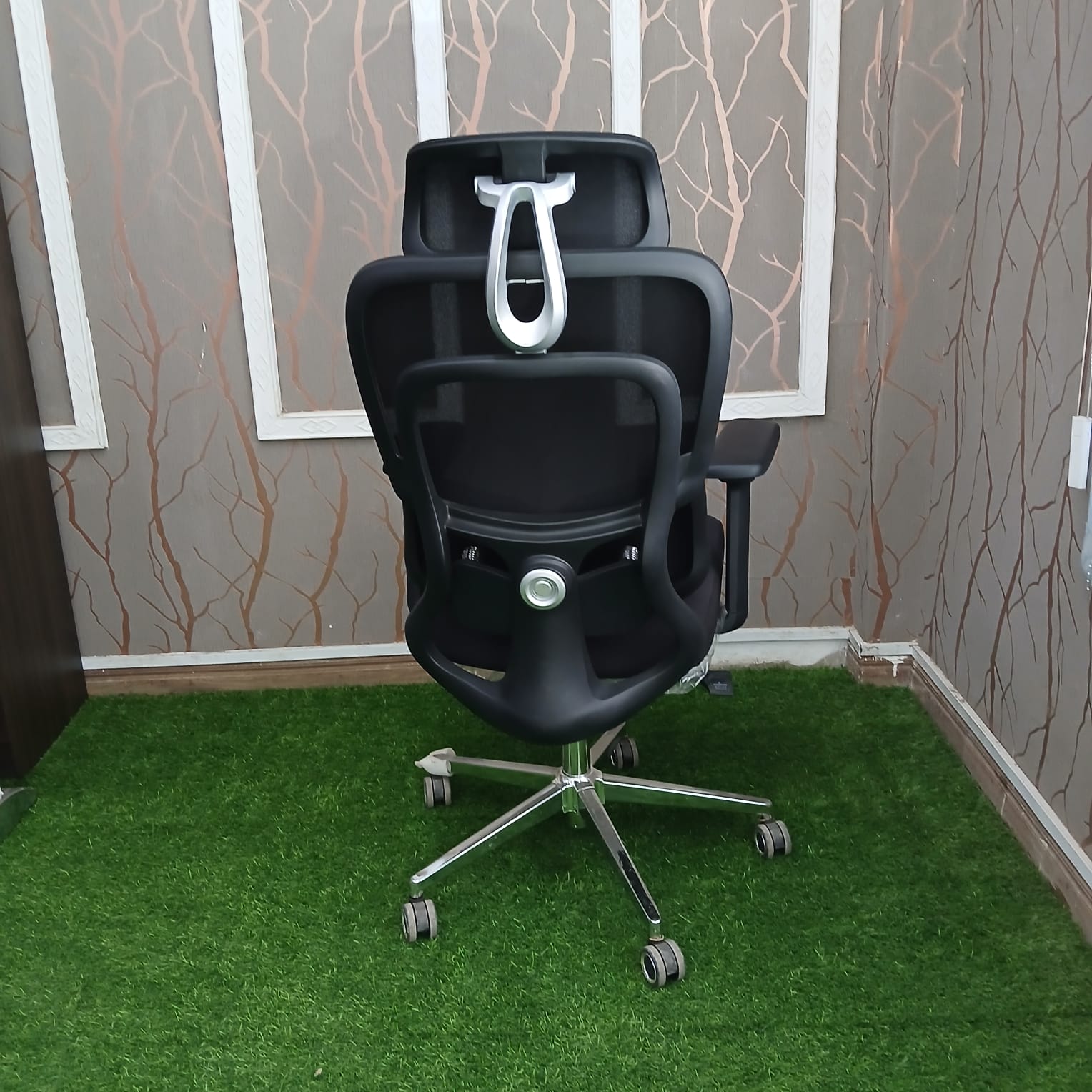 Upgrade your workspace with this premium ergonomic high-back office chair, designed for superior comfort, support, and modern style. Featuring a breathable mesh backrest and an adjustable headrest, this chair promotes proper posture while keeping you cool throughout long working hours. The chair is equipped with adjustable armrests, lumbar support cushions, and a well-padded seat for maximum comfort and reduced strain on the back and shoulders. Its smooth gas-lift height adjustment and 360° swivel allow for easy movement, while the strong chrome base with caster wheels ensures durability and stability. Perfect for executive offices, home offices, and corporate workspaces, this chair combines functionality, elegance, and long-lasting performance.