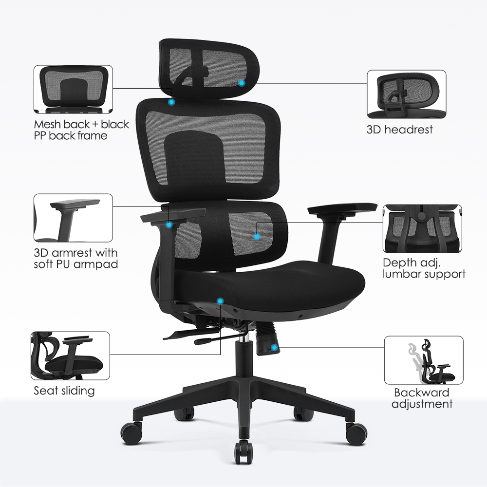 – Multifunctional tilt mechanism with a slide and tilt option.